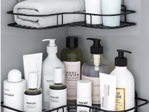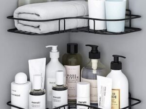 Oslen Multipurpose Bathroom/Kitchen Corner Storage Organizer Wall Mounted Rack Shelf Shower Caddy (No Drilling – Shelf Adhesive) Bathroom Accessories Storage Rack (Black, Pack of 1)