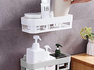 Oslen Pack of 2 Self-Adhesive Plastic Bathroom Rack, Bathroom Shelf Organizer, Wall Mounted Shelf, Bathroom Hardware & Accessories, Storage Racks Kitchen Bathroom Accessories Rack Shelf, White & Black