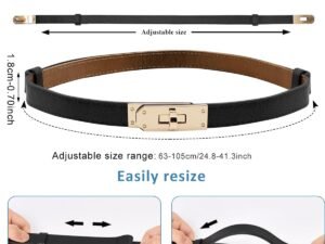PALAY® Waist Belt for Women Dresses, Fashion Ladies Belts for Women, PU Leather Slim Womens Belts for Dress, Blazer, Suit, Black/Brown Alloy Turn Lock Buckle Belt (Fit Waist 70-95cm)