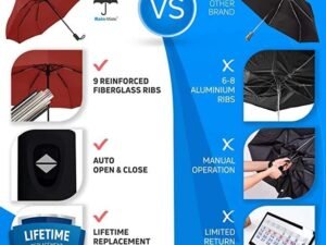 PRIME DEALS Automatic Open Travel Umbrella – Wind Vent, Big Size for Men & Women, Windproof.
