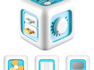 Prime Deals Montessori Toys 6 in 1 Preschool Board & Sensory Busy Activity Cube Toys for Toddlers Early Learning Fine Motor Skills Development Educational Travel Toy Birthday Gifts (Blue)