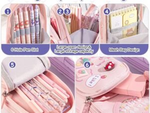 PRIME DEALS Canvas Premium Pencil Case Hang able 6 Layer with 3 Compartment Cute Aesthetic Pencil Case for Girls Large Capacity Pencil Pouch for Kids Cute Stationary Gift for Kids (Pink)