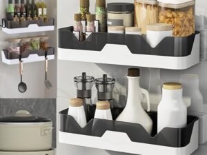 REWOP Self Adhesive Storage Rack, Wall Mounted Plastic Shelf Organizer for Bathroom Accessories and Hardware (Pack of 1, White)
