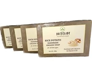 Rice Potato Handmade Organic Bath Soap | Pigmented Soap | Anti tanning Soap | Enriched with Vitamin E, Almond oil(Pack of 4) 4×100 GM