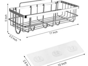 SaleOn Stainless Steel Adhesive Rack for Bathroom & Kitchen | Rust-Free Wall Mounted Shelf with Hooks | Strong Grip, Drainage Design, No Drill Multipurpose Organizer | Storage Adhesive Guaranteed