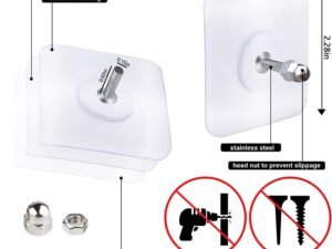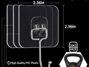 SHOPPOFOBIX Adhesive Hooks 13.2LB(Max) Heavy Duty Self Adhesive Hooks Transparent Waterproof and Oilproof Wall Hooks for Kitchen Bathroom Shower Door Outdoor (Big Transparant, 10)