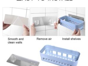 SOCHEP 3 Pcs Plastic Design Bathroom Kitchen Storage Organize Shelf Rectangle Rack Self-Adhesive Sticker Hooks Wall Holder Bathroom Storage Rack(Grey) (SHELVE-3)