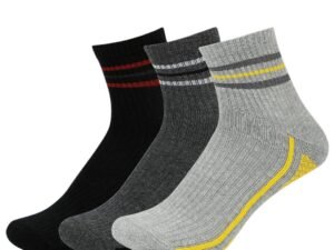 SocksXpress Men’s Cushioned Ankle-Length Socks | Pack of 3 Pairs | Black, L.Grey, D.Grey, Navy | Combed Cotton with Temperature-Regulating Soft Cushioning | Breathable & Daily Comfort Sports Socks