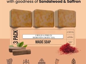 Soap Tan Removal Sandalwood & Saffron and Coconut oil Soaps For Bath | Paraben Free | Chandan & Kesar Bath Soap Skin Brightening Soap For Men & Women PACK OF 3