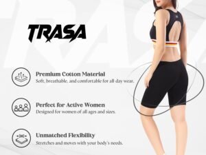 TRASA Women’s Cotton Fashion Biker Workout Cycling Shorts, Avialable Sizes: S,M,L,XL,2XL,3XL