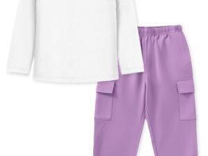 Trampoline Girls White T-Shirt & Purple Cargo Set | Cotton Blend | 4 Pocket Cargo Pants | Trendy Casual Outfit