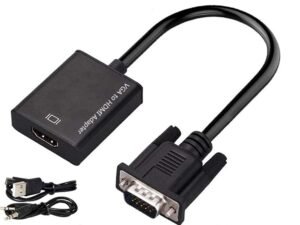VGA to HDMI Converter Adapter with Audio Support 1080P HDTV and USB Cable for Power Supply Supported for TV, Computer, Projector, Laptop, DVD, AV. Black.