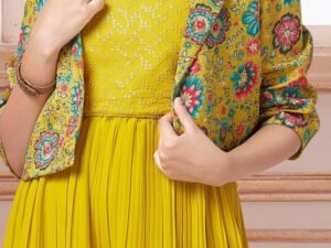 White Button new lemon sequence work with floral print jacket style indowestern palazzo set for girls