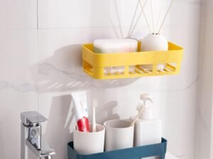 wolpin Plastic Rectangular Multipurpose Wall Shelves Shelf Self-Adhesive Sticker Hooks Wall Holder Bathroom Storage Rack Box Strong Shower Rack Shelf – Multicolour (2 Pieces)