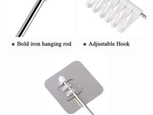 Xacton Stainless Steel Hangers and Hook with Magic Sticker I No Drill Self-Adhesive Rod & 9 Hooks I Wall Mounted Utensil Hanging Rack I for Cloth Kitchen Bathroom Accessories Items – Silver (1 Pcs)