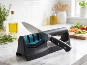 Wucgea 3 in 1 Manual Knife Sharpener Tool with 3 Stage Sharpening System | Professional Kitchen Knife Sharpener for Home | Stainless Steel Knife & Scissors Sharpener Tool (3 in 1)