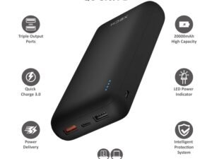 XECH Comet X Li-Polymer Fast Charging Power Delivery (PD) 18W Quick Charge(QC) 3.0 Power Bank 20000 mAH with 2 USB and 1 Type- C Ports (Black)