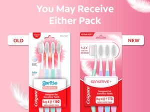 Colgate Sensitive+ Ultra Soft (1.2X softer bristles) Manual Toothbrush Designed for Sensitive Teeth (Mega Saver Pack) – 4 Pcs, Multicolor