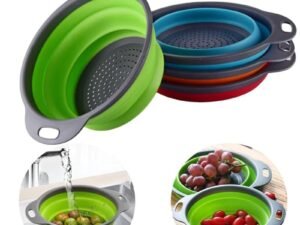 Collapsible Silicone Strainer with Handles 24 cm | Foldable Round Kitchen Colander for Washing Vegetables, Fruits, Rice, Pasta Draining (Multicolor, Pack of 1)