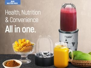Prestige Iris Nutri-Mix 350W Mixer Grinder with 2 Multipurpose Jars|Compact Design|Dual Safety Inter-Lock System|Extra Lids for Storage|Back & Grey