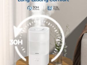 raydrop Humidifiers for Home, 2.5L Cool Mist Ultrasonic Humidifiers for Large Room & Bedroom, Top Fill Air Humidifier for Baby Nursery & Plants, Essential Oil Diffuser with Color Lights, Auto Shut-Off