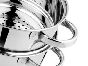 Pigeon By Stovekraft Steel X Steamer Stainless Steel Induction Base, Modak Maker/Momo Maker, Dual Compartment With Glass Lid, 4.6L Capacity, Silver