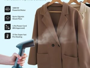 Roboson Handheld Garment Steamer for Clothes 1800W Powerful Vertical Steaming 15 Sec Heat Up 220ml Removable Water Tank Portable Steam Iron Press for Travel & Home Kills 99% Germs (1 Year Warranty)
