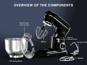 Rossmann Stand Mixer, Professional 2000 Watts 100% Pure Copper Motor, 6 Lit removeable SS Bowl, 4 Safety Features, Metal Gears & Planetary Rotation, Teflon Coated Accessories, Black
