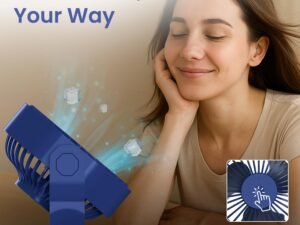 Portronics Chill On, Mini Type-C Powered Table & Hanging Fan, 360° Rotation, 3-Speeds, Upto 5000 RPM, BLDC Motor, One Button Control, Compact 3.5” Design with Loop for Desk, Home, Office & Travel