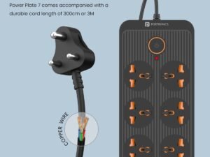 Portronics Power Plate 7 with 6 USB Port + 8 Power Sockets Power Strip Extension Board with 2500W, 3Mtr Cord Length, 2.1A USB Output(Black), 250 Volts