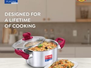 Prestige Platina Popular Stainless Steel Gas and Induction Compatible Casserole with Glass Lid, 180 mm, 2 Litre