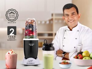Wonderchef Nutri-blend Activ Mixer Grinder Blender, Smoothie Maker, 500W 22000 RPM 100% Full Copper Motor, 2 Unbreakable Jars, SS Blades, 2 Year Warranty, Recipe book by Chef Sanjeev Kapoor, Black