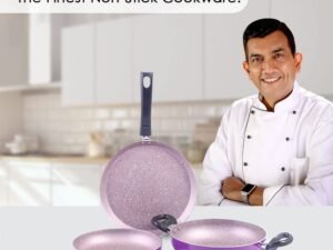 Wonderchef Valencia Non-Stick Cookware 3 Piece Set | Kadhai, Fry Pan, Dosa Tawa | Cool Touch Bakelite Handles | Pure Grade Aluminium| PFOA Free| 2 Years Warranty | Purple