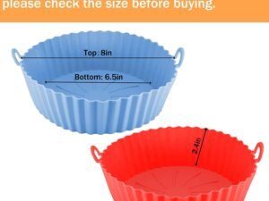 Xacton Air Fryer Liners I Round Silicone Basket Baking Tray I Pot with Ear Handles I Nonstick Reusable Heat Resistant I Cooking Oven Insert Accessories – Multicolor (8 inch, Pack of 2)