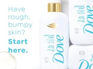 Dove Exfoliate Away Serum Body Wash | 4% Refining Serum + AHA | Micro-polishers for silkier skin | Paraben & SLS free | 300 ml