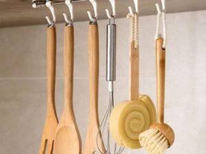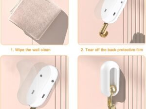 FAVHOME 360° Rotating Kitchen Utensil Holder Hooks – Wall Mount Hanger, Self Adhesive Rack with 6 Hooks, White, Pack of 2 for Home, Bathroom, Office Organization