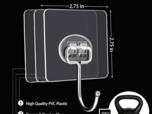 Canway 10Pcs Heavy Duty Self Adhesive Photo Hook No Drilling Installation For Use Inside Home, Bathroom, Kitchen & Etc – Pvc, Transparent