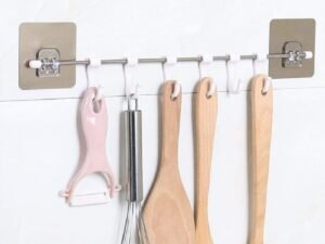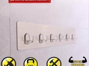 Force24 – Self Adhesive Wall Hooks for Kitchen Organizer Hook for Wall Without Drilling for Home Kitchen Bathroom Bedroom Keys Bag Towels – 6 Stainless Steel Hook with Plastic Strip (Silver Pack of 2)