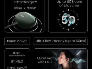 OnePlus Bullets Wireless Z2 ANC Bluetooth in Ear Earphones with Mic, 45dB Hybrid ANC, Bombastic Bass – 12.4 mm Drivers, 10 Mins Charge – 20 Hrs Music, 28 Hrs Battery (Grand Green)