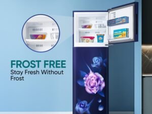 Candy 240 L 2 Star Frost Free Double Door Refrigerator with Flower Pattern,Auto frost, large Fruit & Vegetable Space (Marine Blaze, CDD2652EMB)