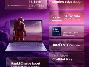 Lenovo Yoga Slim 7, Intel Core Ultra 7 155H, 16GB RAM, 512GB SSD, WUXGA-OLED, AI PC 14″/35.5cm, Windows 11, Office Home 2024, Grey, 1.39Kg, 2Wx4 Speakers, 1Yr ADP Free, 83CV009XIN, AI Powered Laptop