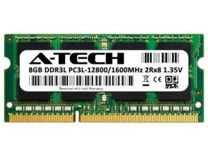 A-Tech 8GB DDR3L 1600MHz SoDimm Module PC3L-12800 Non ECC Unbuffered 1.35V / 1.5V CL11 2Rx8 Dual Rank Laptop Notebook 204-Pin Memory Ram