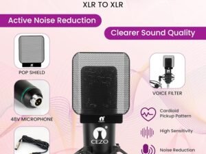 CEZO Professional Condenser Microphone with X3 Sound Card | Condeser Mic Set with Compact Microphone Pop Shield |Live Sound Card| Boom Arm Stand| Shock Mount for Recording Podcasting & Live Streaming