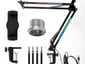 Cezo RGB Overhead Boom Arm Stand For Microphone with Mobile Phone Holder and 7 Colour Modes |Suspension Boom Scissor Microphone Arm Stand for Studio Recording Broadcasting and Gaming