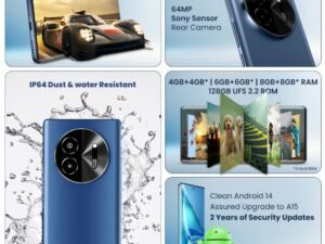 Lava Bold 5G (Sapphire Blue, 8GB RAM, 128GB Storage) | 3D Curved FHD+ AMOLED Display | Mediatek Dimensity 6300 Processor | IP64 Water Resistance | 64MP Rear Sensor | Supports All Indian 5G Bands