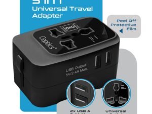 Ceptics Universal Charger Adapter, Travel Adapter International All in One, 2X 2.A USB-A with 15W Total Output, Use in 150 Countries, Type A, C, G, I Output with Universal Input – Black