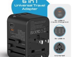 Ceptics Universal Charger Adapter, 35W 6 in 1 International Travel Adapter, Universal Plug Socket with 10 Years Warranty, PD/QC 3.0, 1x USB-C, 3 USB Fast Charging, Worldwide Travel Adapters., Black