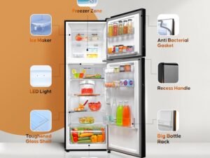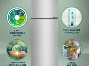 Haier 237L 3 Star Frost Free Bottom Mount Double Door Refrigerator|8 In 1 Convertible Modes|Jhukna Mat-Bottom Freezer|Twin Inverter|200% Faster Ice Making in 49 Minutes (HEB-243GB-P, GE Black)