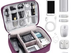 House of Quirk Polyester Electronics Accessories Organizer Bag, Universal Carry Travel Gadget Bag For Cables, Plug And More, Perfect Size Fits For Pad Phone Charger Hard Disk – Purple