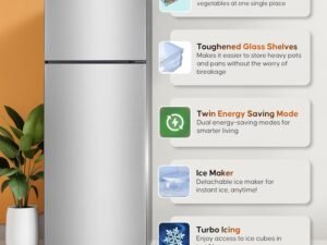 Haier 240L 3 Star Frost Free Top Mount Double Door Refrigerator|5 In 1 Convertible Modes|Twin Inverter|200% Faster Ice Making in 49 Minutes (HEF-253GS-P, Moon Silver)